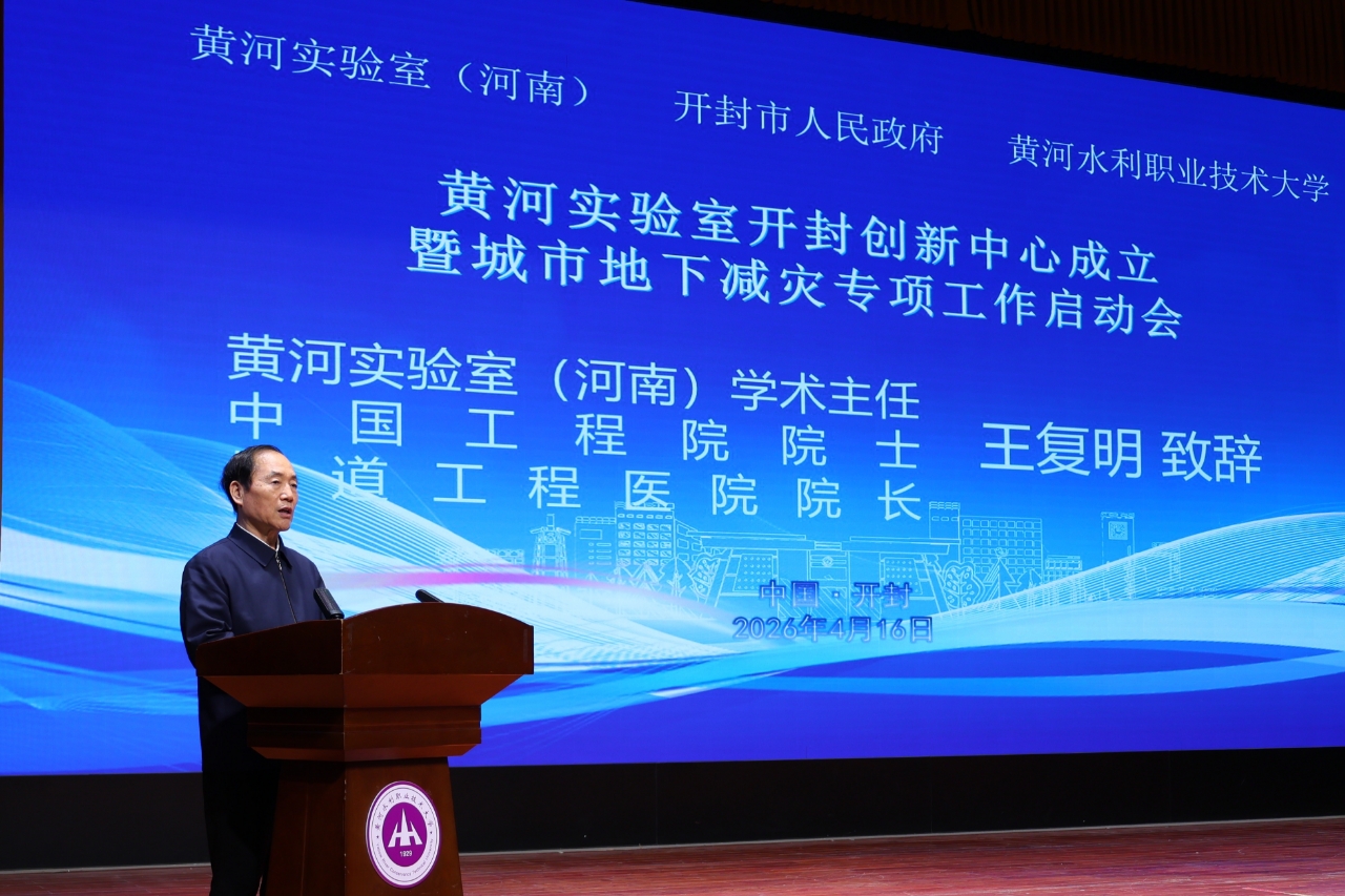 王复明表示,此次签约揭牌是落实黄河流域生态保护和高质量发展重大国家战略的具体行动,也是“政产学研用”协同创新的重要成果。开封创新中心是实验室下沉一线、服务地方、打通科技成果转化“最后一公里”的关键布局。他指出,创新中心成立后,将立足开封区域发展需求与办学特色,凝练适配地方与学校发展的科研方向,联合组建协同创新团队,共建高水平实践创新平台,同时紧密结合学校人才培养实际,全力推动学科专业提质升级,实现科研布局、团队建设、平台支撑与学科发展的深度融合、协同推进。在随后进行的专题报告中,他还围绕悬河治理、堤坝工程安全防护、城市防汛排涝体系升级等核心领域,分享了前沿科研成果和实践经验,并为创新中心后续的技术攻关、项目开发、人才培养等提出指导意见。