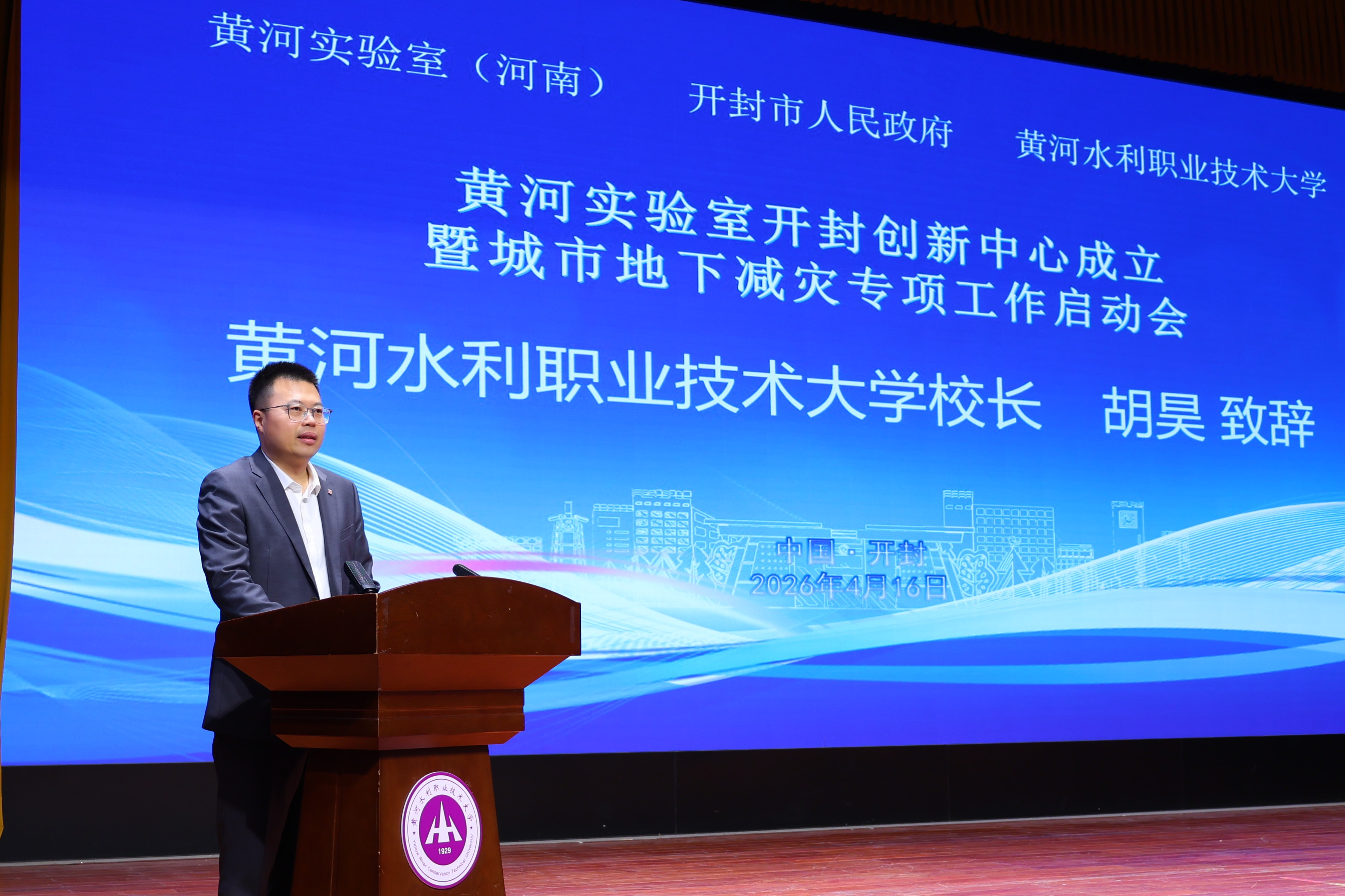胡昊代表学校对各位领导、嘉宾表示热烈欢迎和衷心感谢。他指出,学校1929年因黄河而生、伴黄河而兴,为水利行业输送近20万名高素质技术技能人才。作为全国水利行业和河南省第一所公办本科职业技术大学,学校办学实力稳居全国职业院校前列。此次共建开封创新中心,是落实黄河流域生态保护和高质量发展重大国家战略的务实行动,学校将整合专业优势,对接黄河实验室技术资源与开封产业需求,坚持需求牵引、应用至上、数智赋能、人才共育、成果共享,全力保障中心运行,推动科研成果从实验室走向工程一线,打造“校地协同、科教融汇”创新样板。