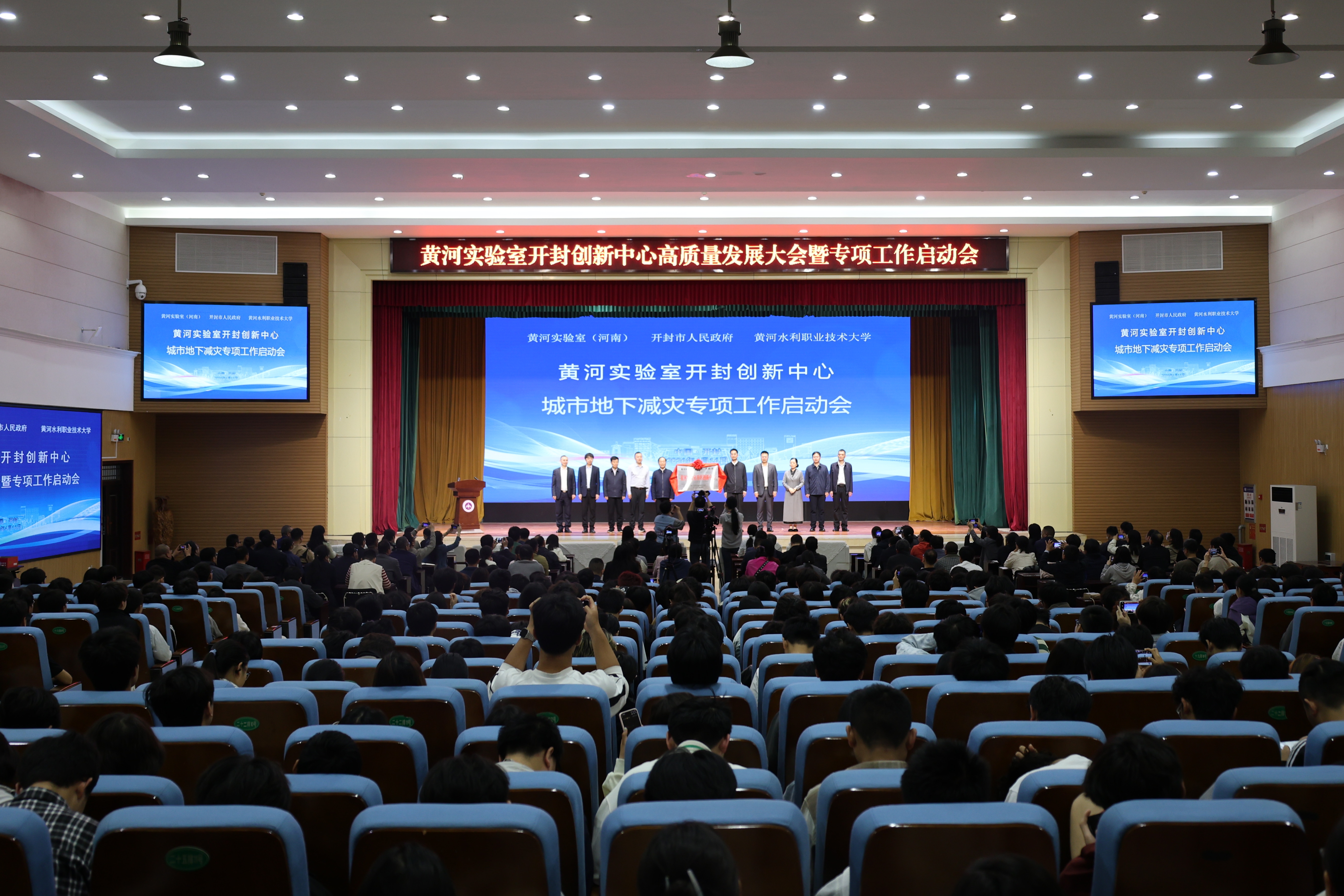 在全场嘉宾见证下,胡昊与王复明共同为创新中心揭牌,朱焕立与黄河实验室(河南)成果转化部部长裴宗杰共同签署《共建黄河实验室开封创新中心合作协议》,标志着中心正式成立。随后,城市地下减灾专项工作正式启动,创新中心将依托技术与人才优势,聚焦开封城区地下管网隐患排查、防灾减灾、智慧管理等关键环节,开展技术研发与实战应用,全面提升城市地下管网防灾减灾与应急保障能力。