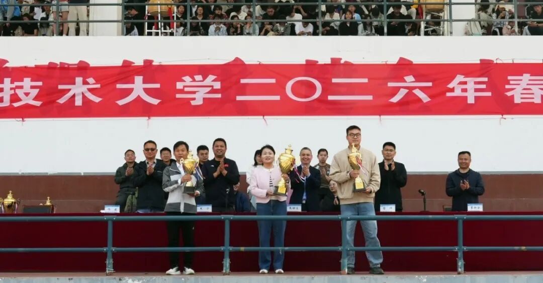 4月17日上午,我校2026年春季运动会在祥云体育场圆满落下帷幕。校体委副主任、副校长朱焕立出席闭幕式并致辞。学生工作部、校体委秘书处、各学院学生工作负责人及运动员代表共同参加。