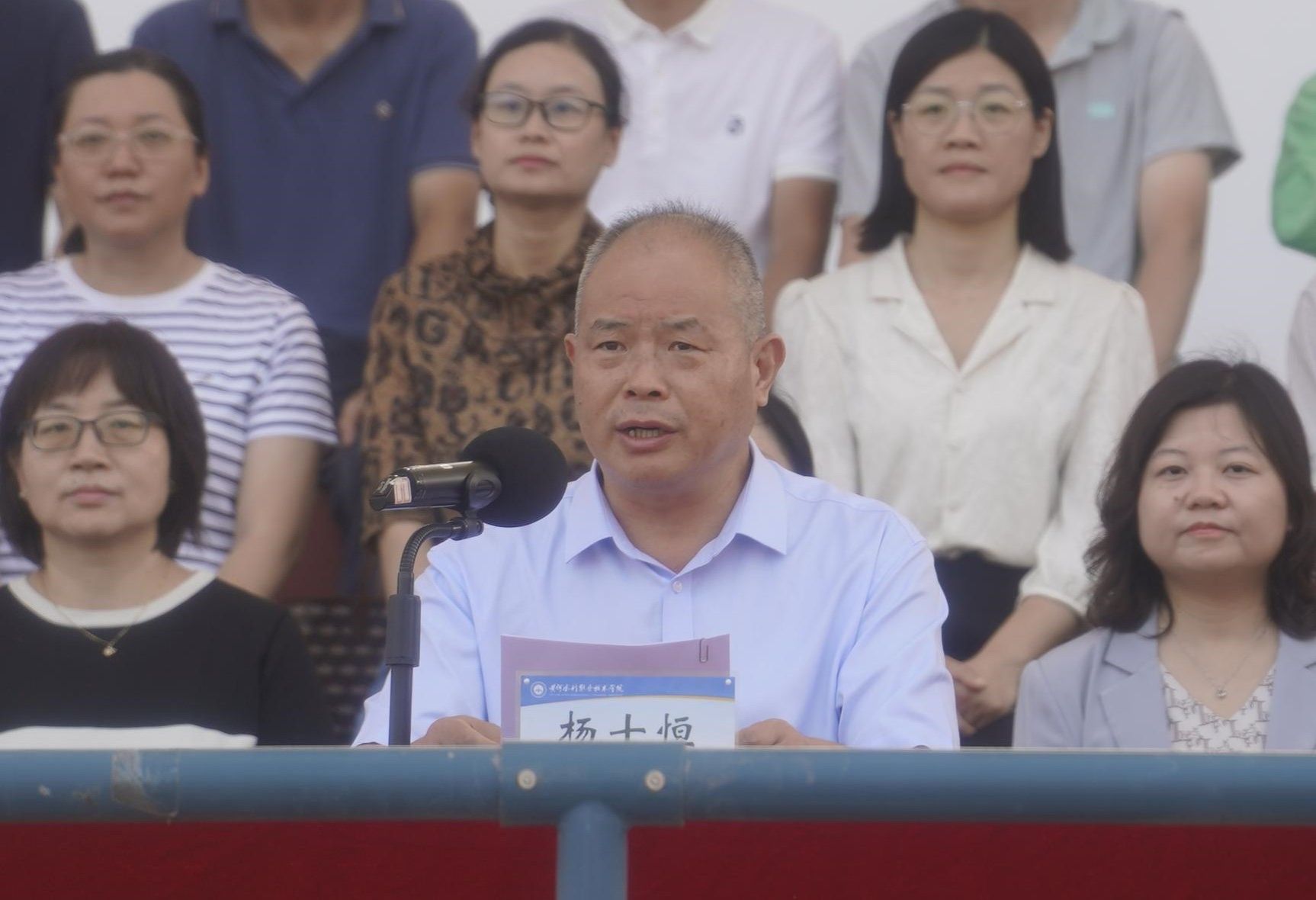 党委副书记、工会主席杨士恒主持新生开学典礼暨军训动员会