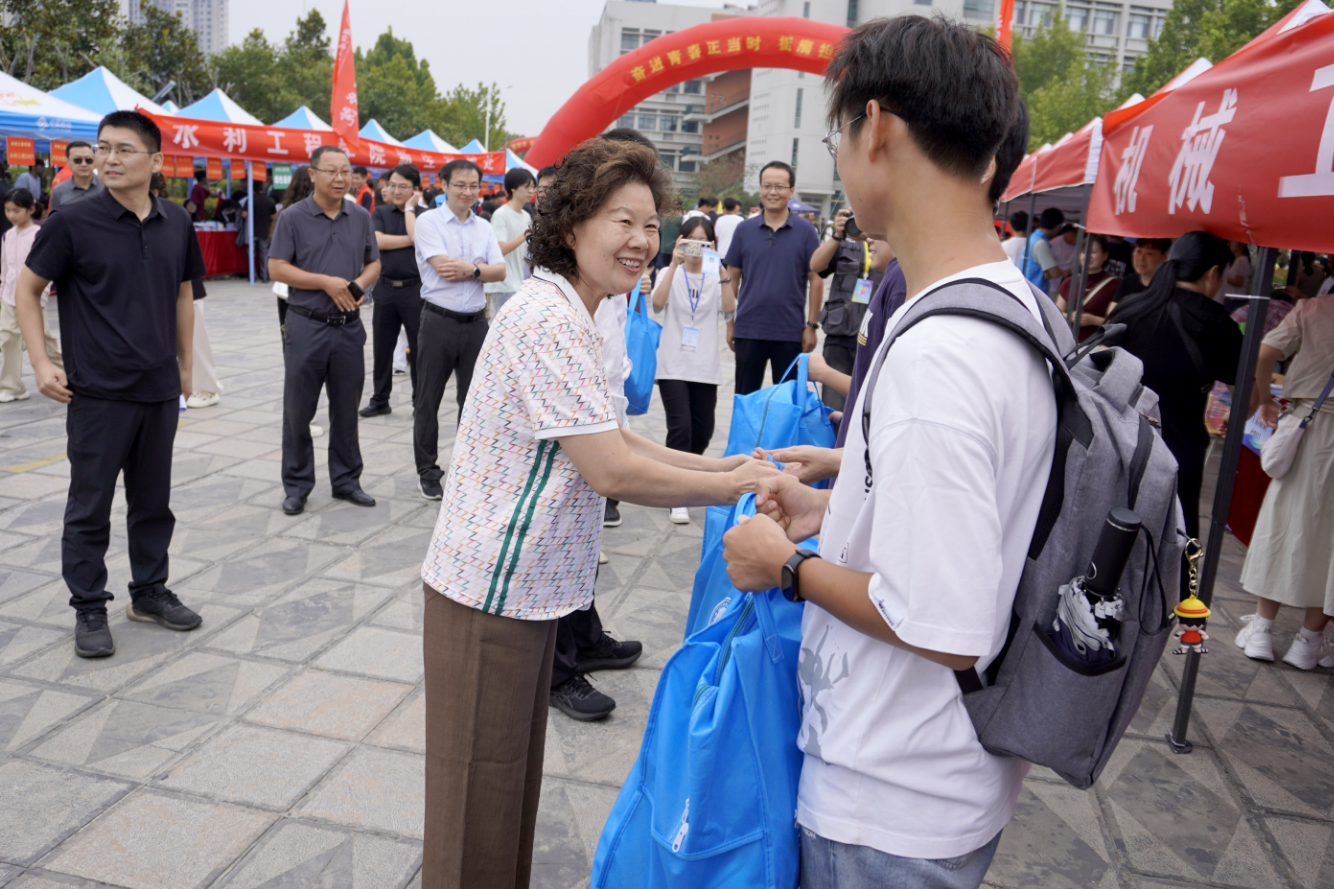 校领导周保平、胡昊、杨士恒、菅浩然、朱焕立、周志琦、刘许亮一行来到迎新现场检查指导迎新工作,看望前来报到的新生及其亲友,慰问参与迎新工作的师生员工。在各学院迎新服务点,校领导嘱咐工作人员要耐心细致做好服务保障,做到让新生安心、家长放心。在绿色通道窗口,党委书记周保平,党委副书记、校长胡昊强调要充分考虑新生需求,竭尽全力提供全方位的关爱与帮助,坚定学生求学信心,并现场为部分新生送上爱心大礼包。周保平还与部分新生及家长亲切交谈,介绍学校近年来的办学成就,并勉励新生珍惜大学时光,铭记校训,继承和发扬水院精神,刻苦学习专业知识,练就过硬技术本领,努力成长为新时代的高素质技术技能型人才。“感受到了学校满满的爱心。”“很顺利,很满意,也很感谢。”新生家长纷纷表示对学校的贴心暖心服务、有序管理非常满意,也希望自己的孩子尽快融入这个集体。