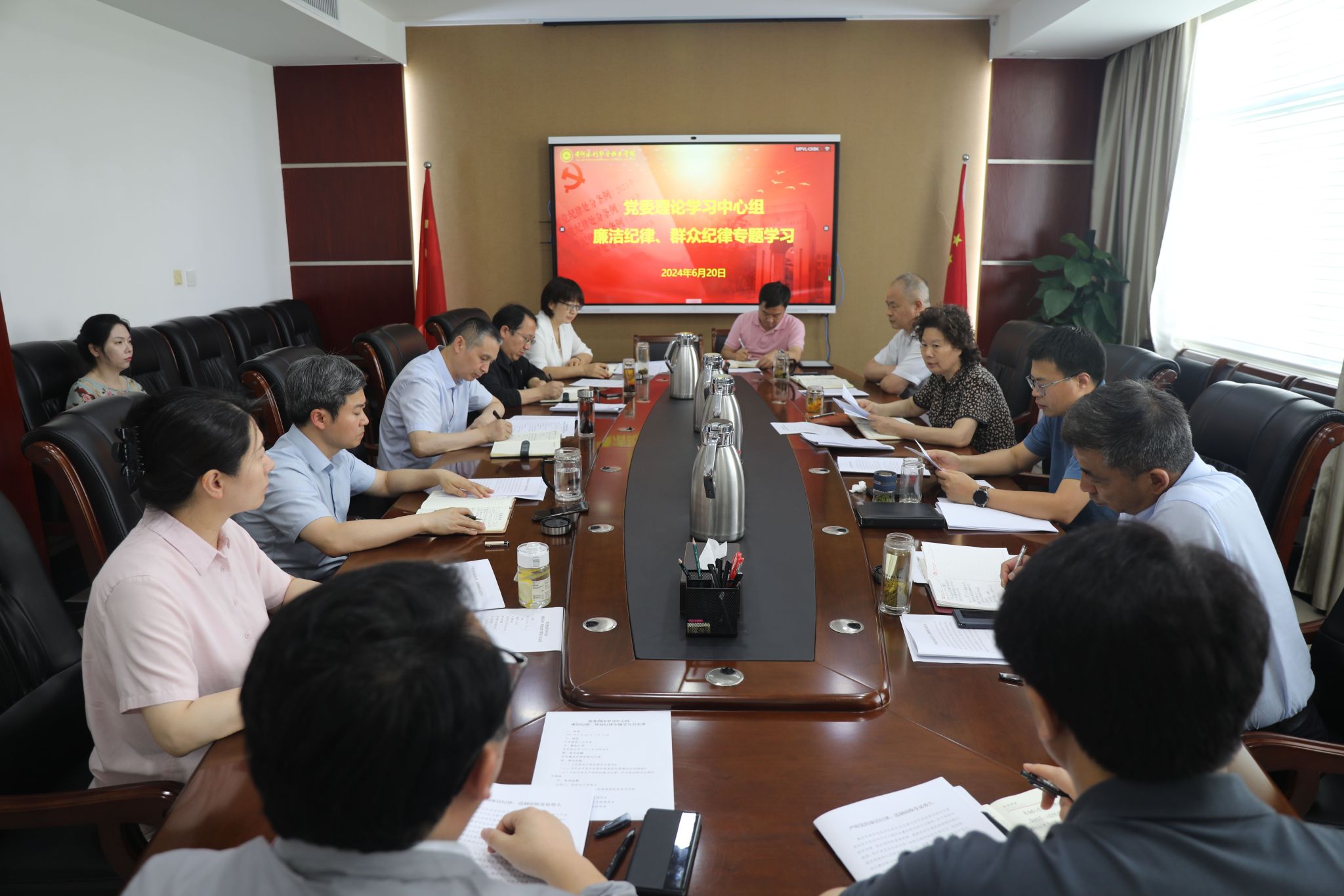 为扎实推进党纪学习教育,6月20日,校党委理论学习中心组召开“廉洁纪律、群众纪律”专题学习研讨会,党委理论学习中心组全体成员参加学习。校党委书记周保平主持会议并讲话。