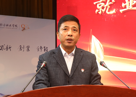 启动仪式上,菅浩然致辞。他简要介绍了学校的基本情况和近年来办学取得的主要成就,并代表全校师生向长期以来关心和支持学校发展的社会各界朋友们表示衷心的感谢。他说,就业是最大的民生。实现大学生充分就业、高质量就业一项重要的政治任务和民心工程。毕业生就业关系到学生及其家庭的切身利益,也关系到学校的办学声誉和可持续发展,也关系到社会的和谐稳定。学校高度重视毕业生就业工作,不断完善就业服务体系,积极拓宽毕业生就业渠道,搭建就业指导服务平台,促进毕业生充分就业和自主创业。学校举办毕业生就业双向选择洽谈会,为毕业生和用人单位之间搭建了便捷的桥梁,既是用人单位的需要,也是毕业生的心愿。他希望通过毕业生就业洽谈会,各用人单位都能招聘到优秀的人才,毕业生都能积极应聘,找到合适的岗位、满意的工作,实现顺利就业。他号召全体毕业生树立正确的就业观和择业观,牢记“守诚 求新 创业 修能”的校训,坚守初心,志存高远,脚踏实地,发奋有为,在平凡的岗位上创造不平凡的业绩。
