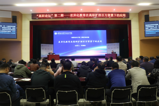 为探索“扩招百万”背景下职业教育改革的着力点,探索解决生源差异环境下的职业教育新模式,10月15日上午,我校邀请中国教育科学研究院研究员、博士生导师、差异化教学的领军者华国栋教授做题为“差异化教育在高职扩招百万背景下的应用”的专题讲座。这是我校“高职论坛”系列活动第二期首场讲座。我校党委副书记、工会主席王卫东,党委副书记刘卫锋,副校长焦爱萍及全校科级以上干部、教研室主任、实训中心主任等聆听了讲座。会议由焦爱萍主持。