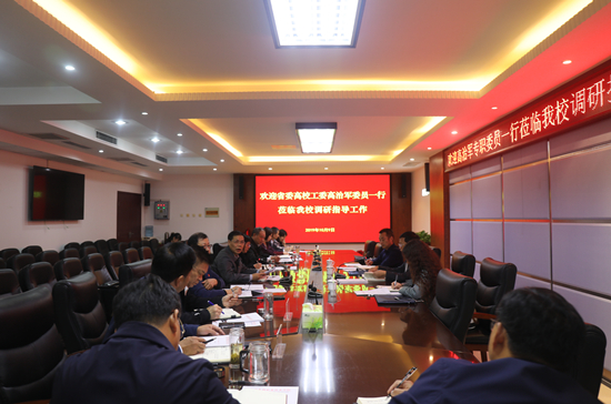 10月9日下午,省委高校工委专职委员高治军一行莅临我校调研指导工作,全体校领导,党政办公室、党委组织部、党委宣传部、纪委等部门负责人参加汇报会。会议由校党委书记许琰主持。