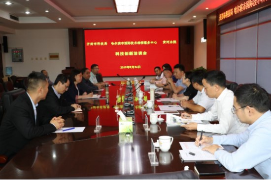 9月24日上午,开封市科技局副局长马玲芝、哈尔滨市国际技术转移服务中心副主任宋铁群等一行8人到我校调研。副校长焦爱萍与来访客人在行政楼第二会议室交流座谈,创新创业学院、科技处等部门相关人员参加座谈。双方就搭建技术转移转化平台,推进中俄国际科技合作,促进区域间创新创业联盟建设及科技成果落地转移等方面进行了深入交流。