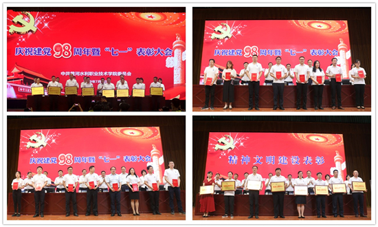 校党委副书记、工会主席王卫东宣读了《中共河南省委高校工委 河南省教育厅关于表彰委管高校优秀共产党员、优秀党务工作者和先进基层党组织的决定》《中共黄河水利职业技术学院委员会关于表彰2019年度先进基层党组织、优秀共产党员和优秀党务工作者的决定》《中共黄河水利职业技术学院委员会关于表彰2018年度基层党组织建设评估优秀单位的决定》。校党委副书记刘卫锋宣读了《中共黄河水利职业技术学院委员会关于表彰2018年度校级文明单位、文明职工标兵和精神文明建设先进个人的决定》。