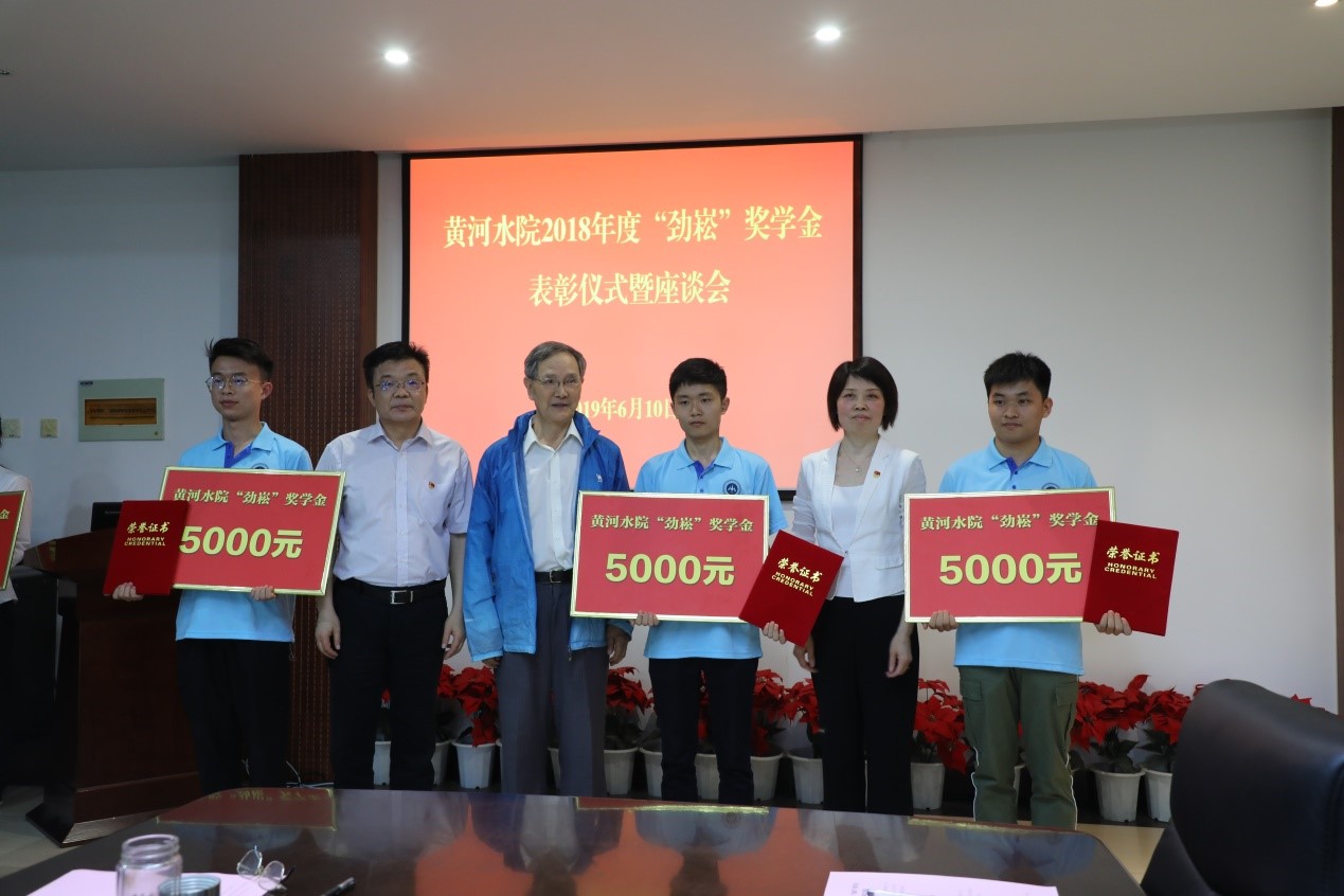 焦爱萍宣读《黄河水院2018年“劲崧”奖学金表彰决定》,校领导和张强武老师分别为获奖的图学类3名学生、力学类3个团队颁发了荣誉证书和奖金等。