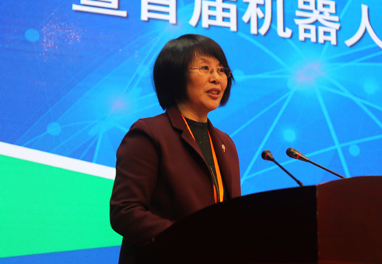我校当选中国机器人职业教育产教联盟理事长单位,祝玉华代表理事长单位发言。她指出,联盟的成立是中国机器人职业教育领域具有里程碑意义的盛事,意义深远,责任重大。人类社会已由工业时代步入信息时代,机器人行业的快速发展孕育出了新的业态和模式,为新常态下的中国经济注入了新的动能,为职业教育尤其是机器人职业教育带来了新的机遇和挑战。她代表理事会郑重承诺,一要自觉遵守联盟章程,认真履行职责,积极谋划,科学定位;二要进一步加强沟通协调,出高招、谋远略、办实事,为联盟发展壮大提供优质服务;三要进一步加强交流合作,实现政、校、行、企优势互补、信息互通、成果共享,形成发展合力,实现共建、共享、共赢,引领和助推中国机器人职业教育创新发展。