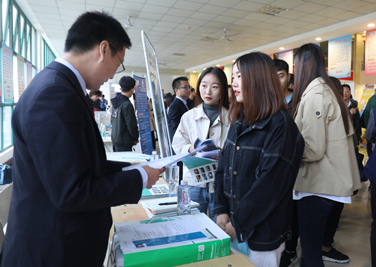 启动仪式结束后,举行2019届首场毕业生就业双选会。本场双选会共有中铁十四局集团有限公司、中国葛洲坝集团易普力股份有限公司等209家用人单位参会,提供就业岗位1万多个,签订就业协议和达成就业意向的学生1000余名,涵盖了水利水电建筑工程、道路桥梁工程技术、工程测量技术、机电一体化技术、机械设计与制造技术、建筑工程技术、应用电子、会计电算化、物流管理、酒店管理等专业。2019届我校毕业生5925人(其中本科毕业生48人、专科生5815人、留学生62人),涉及66个专业及方向。毕业生双选会继续采取小型化、专业化和多场次的形式,增强招聘的灵活性、主动性和针对性,更加贴近学生实际,满足招聘单位和学生的双向需求。自10月19日起到11月9日,将安排4场双向选择洽谈会,举办时间为每周的星期五。(摄影:党委宣传部 袁洪博 郝迪婧)
