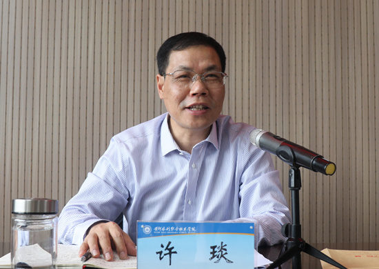 许琰强调,学校要坚持以习近平新时代中国特色社会主义思想为指导,深入贯彻落实党的十九大精神和全国教育大会精神,以高质量党建推动事业高质量发展。高质量党建推动事业高质量发展要体现在四个方面,即体现在党对学校事业发展的全面领导和核心作用的发挥上,体现在主动对接“一带一路”倡议、中国制造2025等国家重大发展战略,提升社会服务能力上,体现在主动融入河南发展新部署,助力中原更加出彩上,体现在主动培育学校内涵发展新优势,进一步提升人才培养质量上。就如何培育学校内涵发展新优势,他指出,一要加快推进“十三五”发展规划,对照目标抓落实,确保各项工作任务落到实处。二要从教育教学改革,对外合作与国际化办学,深化产教融合,深化创新创业教育等方面打造靓丽名片,引领学校事业高质量内涵发展。三要把握大势,谋划全局,推动学校跨越式发展。要抓好第二次党代会的筹备工作,谋划好未来五年发展蓝图,顺利完成“863”计划任务,即“八大工程”、6000万元科技服务收入、3个国家“50强”;制定“双百”“双高”“双一流”“双跨越”发展战略,即引进100名高层次人才、100名高素质能工巧匠,建设高水平专业、高水平院校,建设国内一流、国际一流院校,实现办学层次、办学水平新跨越,实现历史名校复兴“水院梦”,办好人民满意的高职教育,培养勇于担当民族复兴大任的时代新人。(摄影:党委宣传部 郝迪婧)