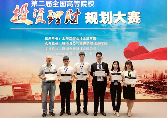 6月3日,第二届全国高校投资理财规划大赛在上海立信会计金融学院成功举办。我校派出由杨立功、单樱子两位指导教师,蔡宜潼、郝百鑫、刘国庆、孙倩等四位学生组成的代表队参赛。经过激烈角逐,我校代表队荣获团体一等奖,并个人一等奖3项、个人二等奖1项。