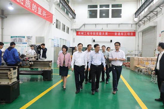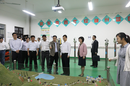 调研中,高建军一行一边现场视察我校测绘、水利、土木、机械等专业实训场馆,“足迹”文化景观,鲲鹏山水利水电实训基地等,一边认真听取关于我校发展历史、发展思路和目标、办学条件、实践教学、招生就业、国际合作办学、科研与技术服务、创新创业教育等有关情况及学校发展成就的介绍,对我校雄厚的办学实力、先进的人才培养模式、强大的科研与技术服务能力、较高的人才培养质量、优美的校园环境、高职特色鲜明的校园文化等给予高度评价。