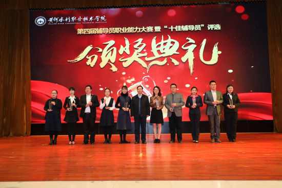 校党委书记许琰为获得“十佳辅导员”的选手颁奖并合影