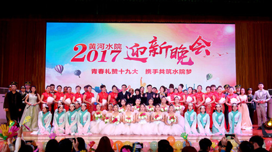 挥洒青春激情,展现水院风采。11月14日晚,由校团委主办的以“青春礼赞十九大 携手共筑水院梦”2017年迎新晚会在流光溢彩的学生活动中心报告厅隆重举办。校党委副书记、校长祝玉华,党委副书记、工会主席王卫东,党委副书记刘卫锋,副校长焦爱萍及学校各部门师生等近千余人观看了演出。报告厅内流光溢彩,气氛热烈,暖意融融。