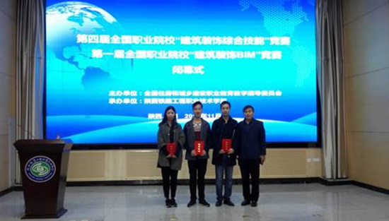 11月5日上午,由全国住房和城乡职业教育教学指导委员会建筑与规划类专业指导委员举办的第一届全国职业院校“建筑装饰信息模型BIM”竞赛在陕西铁路工程职业技术学院落下帷幕。我校由土木与交通工程学院建筑工程技术专业学生李岩峰、孙小梅组成的参赛队通力协作,不负所望,出色完成了建筑装饰信息模型以及相关族、统计表、施工图的制作,充分展示了娴熟的BIM技术应用与协作技能,荣获团体一等奖。