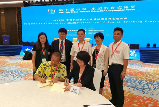 在本届教育交流周上,我校与印度尼西亚、老挝、泰国、菲律宾、柬埔寨、越南等6个国家的13所院校达成合作意向,签订了合作协议,主要涉及教师交流、学生互换、科研合作等项目,进一步拓展了我校国际交流与合作的广度和深度。东南亚教育部长组织秘书长加多特、东南亚教育部长组织职业技术教育区域中心副主任帕尤诺签字见证了合作项目协议的签署。(供图:国际教育学院)
