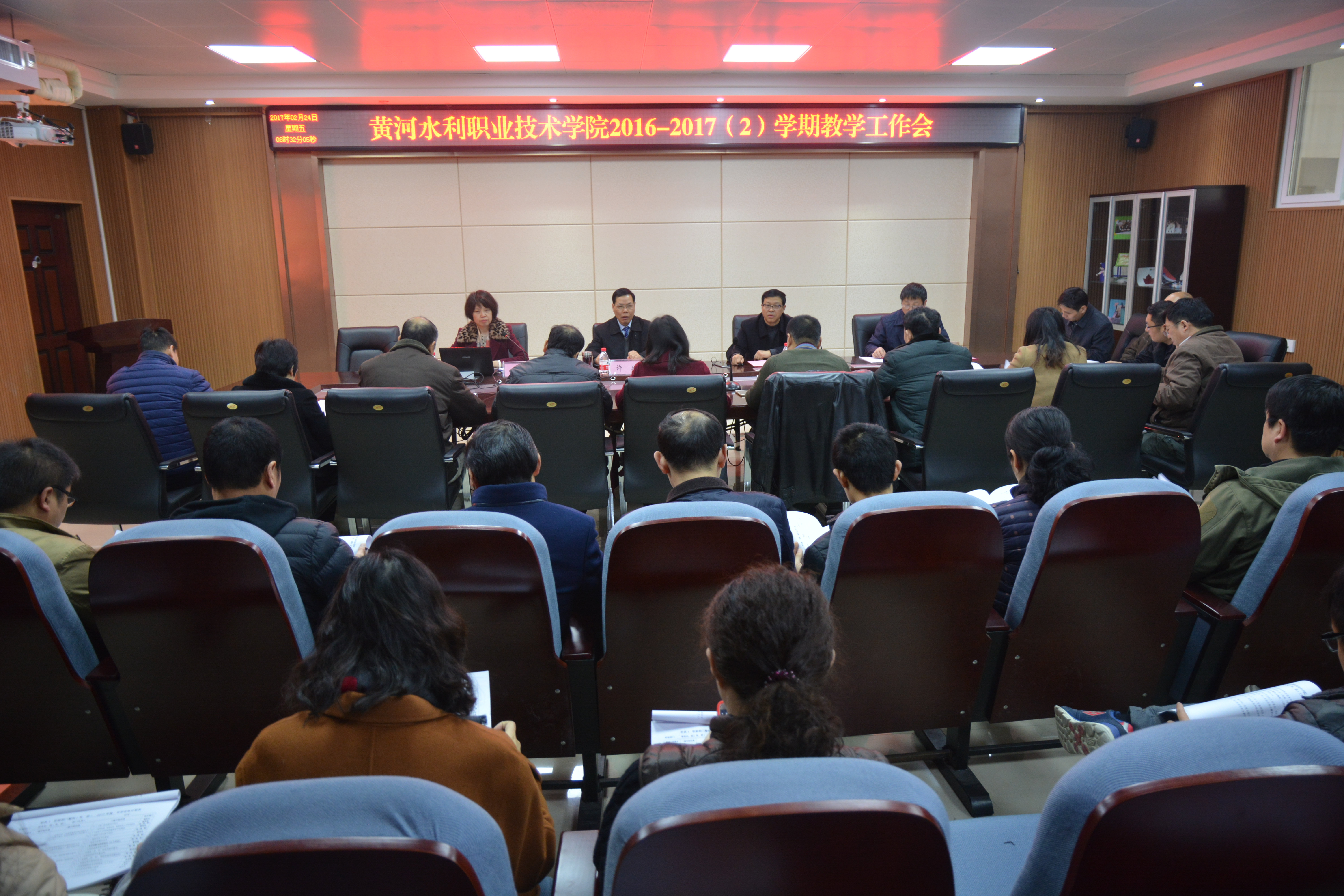 2月24日上午,我校本学期教学工作会在5号实训馆教务会议室召开,校党委书记许琰,校党委副书记、工会主席王卫东,副校长焦爱萍等出席会议。15个教学院(系、部)、教务处(示范办)、教育教学督导室、数字化校园建设与管理办公室等部门负责人及有关人员参加会议。会议由校党委副书记、工会主席王卫东主持。