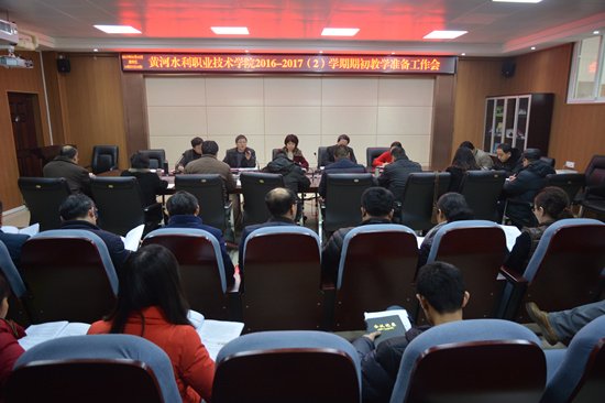 2月10日下午,我校2016—2017学年第二学期初教学准备工作会在5号实训馆教务会议室召开,副校长焦爱萍出席会议。15个教学院(系、部)、教务处(示范办)、教育教学督导室、数字化校园建设与管理办公室等部门负责人及有关人员参加会议。会议由示范建设与评估办公室主任、教务处副处长薛建荣主持。