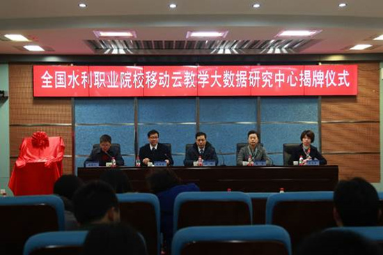 副校长焦爱萍与商桑院长分别代表双方签约。校党委书记许琰,党委副书记、工会主席王卫东,副校长焦爱萍及院长商桑共同为全国水利职业院校移动云教学大数据研究中心揭牌。