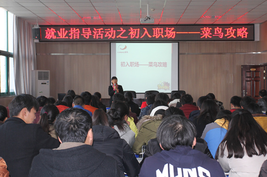 11月30日晚,在学生活动中心302教室,教学督导室副主任曾宝亭老师为毕业生做了一场以“初入职场菜鸟攻略”为主题的就业指导讲座。曾老师以个人经历和学生发展典型案例为切入点,讲述了职场菜鸟的种种表现。讲座“接地气”的经验分享和“高大上”的总结,解答了学生们的就业困惑,为学生们的职场生涯提出了建议,为学子们从学生角色转变为职业人角色提供了帮助。