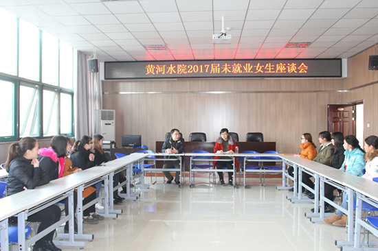 12月7日下午,在学生活动中心302教室,招生就业服务中心副主任马晓慧主持召开了“黄河水院2017届未就业女生座谈会”。马晓慧副主任从学生未就业原因、就业需求、就业心态等方面与学生代表进行了深入的交流,并勉励她们调整心态、树立自信、放宽视野,综合考虑自己的兴趣和价值观,积极主动求职。会后,与会学生登记相关信息,招生就业服务中心将根据企业需求情况做好推荐工作。