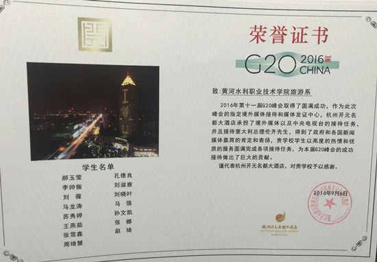 9月6日,杭州维景国际大酒店、杭州开元名都大酒店向我校发来感谢信,表彰我校旅游系30余名学生在G20峰会期间做出的贡献。