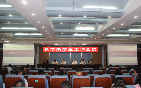 学生处处长谷献晖简要回顾了上学期我校学生工作在思想政治教育、学工队伍建设、日常管理、心理健康教育、特色品牌项目建设、资助工作等方面取得的显著成效,强调了新学期学生工作重点:一是要坚持立德树人根本任务,切实加强大学生思想政治教育;二是要提高思想认识,落实好全员育人试点工作;三是要采取有力措施,继续提高学工队伍的服务管理水平;四是要增强责任意识,做好学生安全稳定工作。