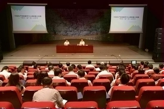 下午15:00,我校暑期干部培训班特邀华北水利水电大学水文化研究中心首席专家、原校党委书记朱海风教授在红旗渠干部学院作有关“两学一做”专题的报告。校领导许琰、王卫东、刘紫婷、杨士恒、刘卫锋和全体中层干部聆听报告,报告会由校党委书记许琰主持。