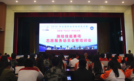 5月3日下午,我校在学生活动中心报告厅举行2016年全国职业院校技能大赛测绘赛项比赛志愿服务动员暨培训会。校党委副书记、副校长王卫东出席并讲话,党政办公室、教务处、数字化校园建设与管理办公室、保卫处、团委、测绘工程学院等相关部门负责人参会,400余名志愿者参加了培训。