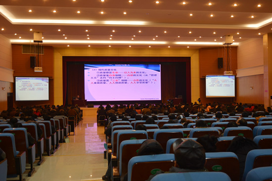 1月20日上午,全国高职教育著名专家杨应崧教授应邀莅临我校做“职业院校教学工作诊断与改进”专题报告。我校党委副书记、校长刘国际,副校长茹正波,党委副书记、副校长王卫东,副校长杨士恒,党委副书记刘卫锋等出席大会。我校科级以上干部、全体教师以及来自郑州铁路职业技术学院、平顶山工业职业技术学院、商丘职业技术学院、河南农业职业学院、河南工业职业技术学院、河南职业技术学院等6所国家示范骨干校的领导共600余多人听取了精彩报告,讲座由党委副书记、副校长王卫东主持。