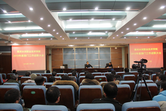 1月12日,我校在3号实训馆学术报告厅召开2015年度部门工作述职评议大会。全校科级以上干部、教代会代表出席会议。校党委书记许琰作了大会总结讲话。会议由校党委副书记、副校长王卫东主持。