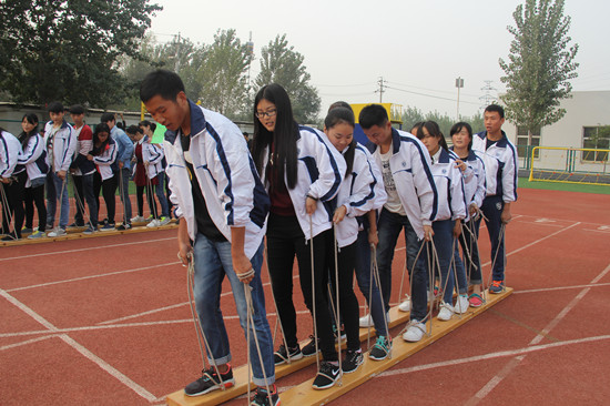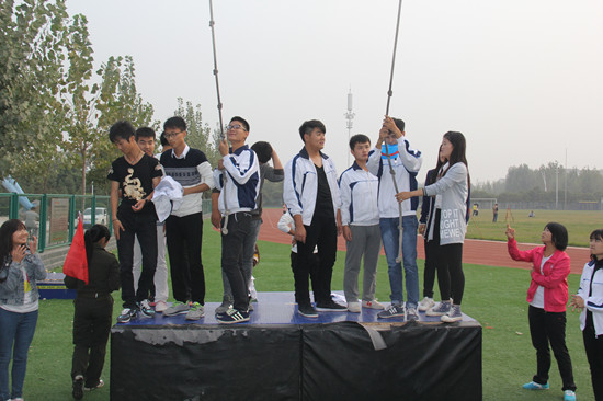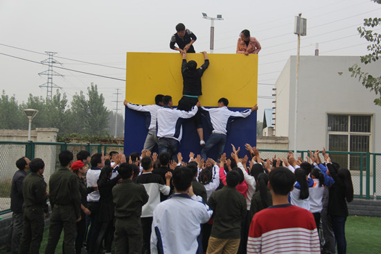 本次活动在五环体育场心理素质拓展实训基地举行。我校心理咨询中心主任郭豪杰和咨询中心教师王超、朱孟昀担任活动指导,我校阳光心理联合会素质拓展队队员带领参训同学分组举行团队活动。活动内容包括“硫酸池”、“穿越电网”、“有轨电车”、“毕业墙”等项目,其中“硫酸池”项目作为经典心理素质拓展活动项目,情景设置为:一队科考人员在科技考察过程中,遇到充满硫酸的峡谷,只有一根绳子可以利用,队员之间要密切配合,将科研器材顺利运送到峡谷对面,如果器材掉落,则产生爆炸,威胁到队员的生命安全。该项目旨在培养队员之间的合作精神,练习以小组为单位解决问题的能力和勇往直前的精神。开封大学和我校学生共同合作,成功完成原定项目任务,尤其在攀爬毕业墙的过程中,两校学生更是互帮互助、不分彼此、共搭人梯,在不借助任何工具的情况下,顺利翻越4.2米的毕业墙。开封大学的学生表示很高兴能参加这次活动,不仅克服困难,完成了挑战任务,更认识到心理素质拓展活动的魅力。