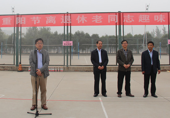 “家家有老人,人人都会老”,“树敬老之风,促社会文明”。10月21日,恰逢中华传统节日九九重阳节,我校离退休老同志趣味运动会在五环体育场热烈举办。秋意正浓的校园里庆祝重阳节的条幅惹人关注,熙熙攘攘的运动场上老同志们正穿梭于不同的运动项目。校党委副书记、校长刘国际,党委副书记、副校长王卫东,工会主席、纪委书记张豫东出席运动会开幕式,200余位离退休老同志参加了运动会活动。开幕式由校党委组织部部长、离退休工作处处长菅浩然主持。