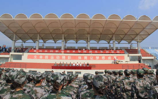 9月15日下午,我校2015级新生军训会操在祥云体育场举行。学生处副处长王国英、承训部队首长及各院系分管学生工作的领导等共同观看了会操。会操表演由学生处教育管理科科长柴杉主持。