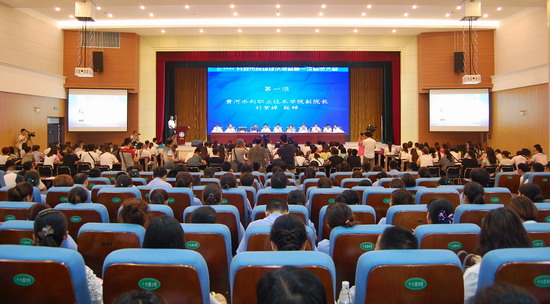 7月21日上午,开封市网络经济协会成立大会暨首届电子商务论坛在我校举行。论坛由开封市人民政府主办,开封市商务局、开封市网络经济协会、黄河水利职业技术学院共同承办。有来自17个市直部门、9个县区以及20多个行业协会,近500家企业代表的700余人参会。