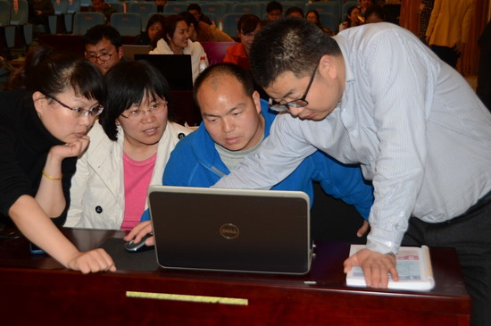 在实践操作时段,刘万辉重点讲解了可汗学院式、课堂实拍式、录播教室拍摄式、访谈式、讨论式、讲坛式、PPT动画式、Prezi动画式、录屏式、实景拍摄式、二维或三维动画式、虚拟抠像式等的开发方式以及相关软件的应用方法。随后,与会教师针对Prezi软件、思维导图软件等微课制作的相关软件进行实际操作,刘万辉进行了耐心指导,并与大家就微课制作方法、经验进行了交流。刘万辉教学方法自成一格,讲解富有激情,风趣幽默,激发了广大教师对微课制作的学习热情。