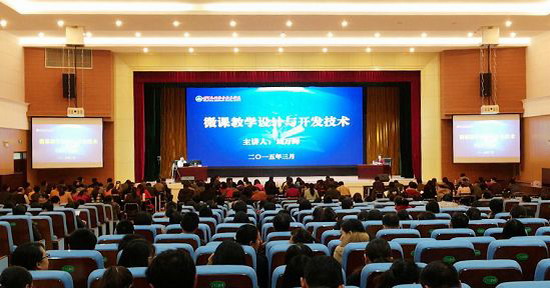 为帮助我校教师切实掌握“微课”教学设计和开发的方法、技术,推进信息化教学的有效实施,实现优质资源的共建、共享,拓展教与学的手段和内容,3月21日,学校聘请全国高职高专教育教师培训联盟微课培训主讲教师刘万辉教授,在我校学生活动中心报告厅开展微课教学设计与开发技术培训。学校党委副书记、副校长王卫东,各系部领导,全体专任教师,机关各部门兼任教师等近600人参加了培训。培训会由教务处长焦爱萍主持。