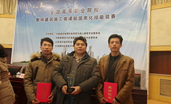 1月16日~18日,首届全国高等职业院校教师建筑施工类课程信息化技能竞赛在济南举行。我院土木工程系主任王付全带领该系曹磊、杨利国老师代表我院参赛,并获得了团体一等奖的好成绩。