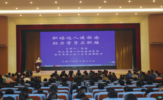 为帮助毕业生准确自我定位,全方位提升就业核心竞争力,1020日下午,招生就业服务中心邀请浙江省第一水电建设集团股份有限公司(以下简称浙水股份)监事会主席、纪委书记、劳动人事部经理苏铭来我院为2015届毕业生分享职场感悟。他简单介绍了我院学子在浙水股份的发展,并指出,黄河水院办学特色突出,毕业生动手能力强、能吃苦,其中有一批毕业生已成为浙水股份中业务骨干。在谈到企业需求人才标准时,他表示,企业需要理论知识扎实、实践能力突出、沟通协调能力强、谦虚好学的优秀毕业生。他建议广大学生要树立学习意识,不断提高人文素养,强化交流和沟通能力,突出实践能力的培养;在职业生涯发展中,要认真对待工作,善于展现自身的优点,并结合企业发展目标,设立自身的目标和规划,通过不断努力,迈向更高发展层次。