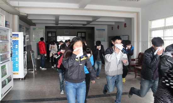 为普及消防安全知识,增强师生消防安全意识,提高应急反应、自救互救能力,11月14日,我院在学生公寓6号楼、祥云体育场西南绿地分别举行了消防疏散和灭火演练。演练共分为火场逃生和灭火演练两部分,分上、下午举行。参加演练的有各系部重点部位防火责任人、后勤服务中心工作人员、2013级新生等共计1500余人。
