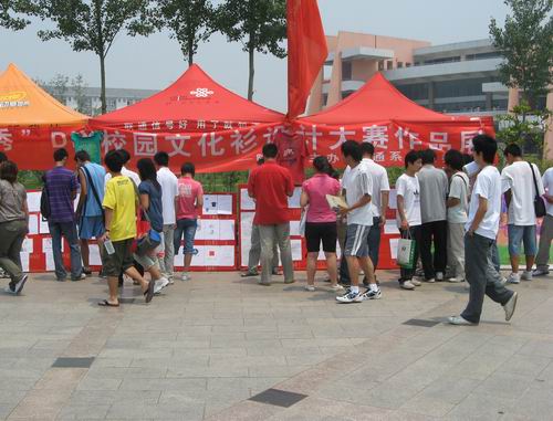 为迎接学院建校80周年,不断丰富校园文化生活, 6月15日下午,由院团委主办、交通工程系分团委承办的“我衣我秀”DIY校园文化衫设计大赛作品展示和评选活动在青年大道举行。院团委副书记谷献晖、宣传部耿风、社科部李思荟、周扬担任评委,交通系副书记杜广平、分团委书记焦东良观看了评选活动。