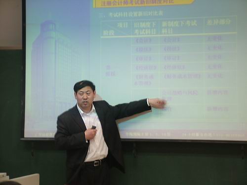 此次报告会由“中华会计网校”辅导专家赵海立老师主讲。赵老师首先针对2009年注册会计师考试制度改革、报考技巧、应试学习方法以及会计行业未来的职业发展方向等问题向同学们做了认真、详细的讲解,使广大同学对报考注册会计师考试方面的相关知识有了进一步了解。