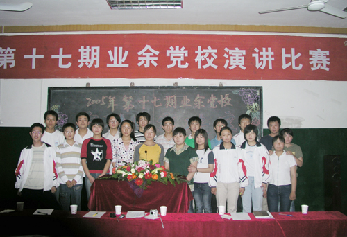 6月9日下午,基础部五年制高专在西南院教学楼109教室举办了新团员入团宣誓及第十七期业余党校演讲比赛。基础部党总支书记李文丰老师赛后讲话,对演讲比赛取得圆满成功表示祝贺,团总支书记王忠伟老师对比赛作了精彩点评,并宣读了获奖同学名单。