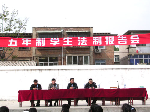 针对五年制高专最近出现的打架、内盗、夜不归宿上网等法制意识淡薄现象,4月22 日下午,院保卫处治安科和基础部邀请梁苑派出所周所长在西南院操场向五年制16个班级的学生作了一场生动的法制报告会。