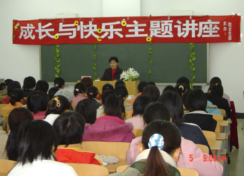 12月5日上午9点,学生处刘紫婷处长在新校区为我院全体大一女生做了一场关于“成才与快乐”的专题讲座。刘处长就什么是快乐,怎样快乐成才等问题进行了全面而深入的阐述。讲座气氛热烈,形式多样,许多学生纷纷发言,谈了自己一些看法。同时,刘处长也呼吁全院教职工都来关注学生的成长。刘处长还就一些同学提出的问题进行了现场解答,整个讲座融生动性与教育性为一体,深受同学们好评。