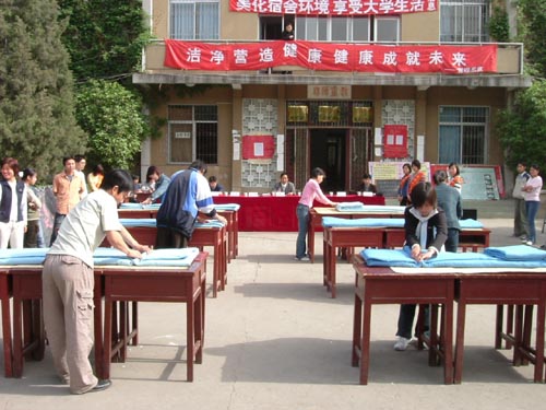 4月16日是管理系学生休息日,上午9点,管理系学生会在西北院教学楼前举行了管理系成立后的首届学生叠军被比赛,拉开了该系“宿舍文化节”活动的序幕。