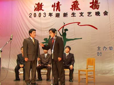 10月20日、21日晚,院团委主办的“激情飞扬”迎新晚会在东院大礼堂进行了两场演出,学院领导俞海洛、刘宪亮等和3000多名新同学共同观看了演出。整台晚会内容活泼、形式多样,老师和同学竞相登台演出,把一份份欢乐送给了2003级新同学。同时,晚会也进一步增强新同学们对学院的认同感和归属感。