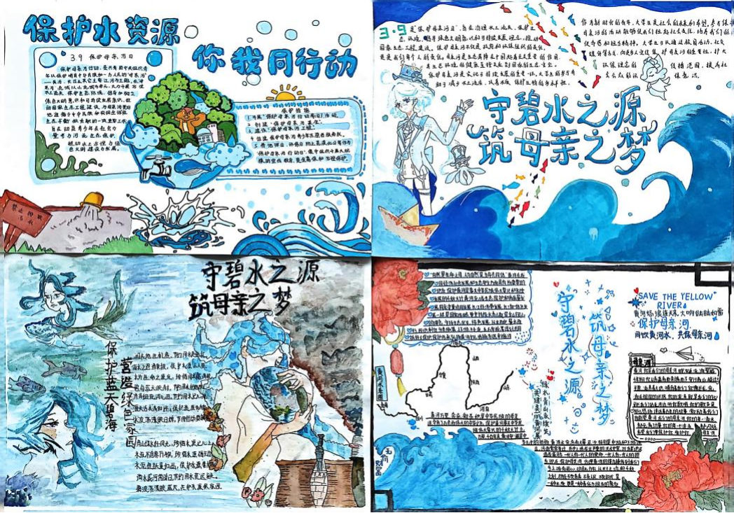 3月18日,水土保持协会以“守碧水之源·筑母亲之梦”为主题开展征文、手抄报活动,活动中同学们挥洒着想象力,创作出一幅幅色彩斑斓、内容丰富的手抄报作品,生动诠释了他们对节水行动的独到见解与积极倡议。此次活动不仅为同学们搭建了一个展示艺术才华的舞台,更在他们心中播撒下节水意识的种子,为节水意识的培育奠定了坚实的基础,让节水理念在同学们心中生根发芽,茁壮成长。